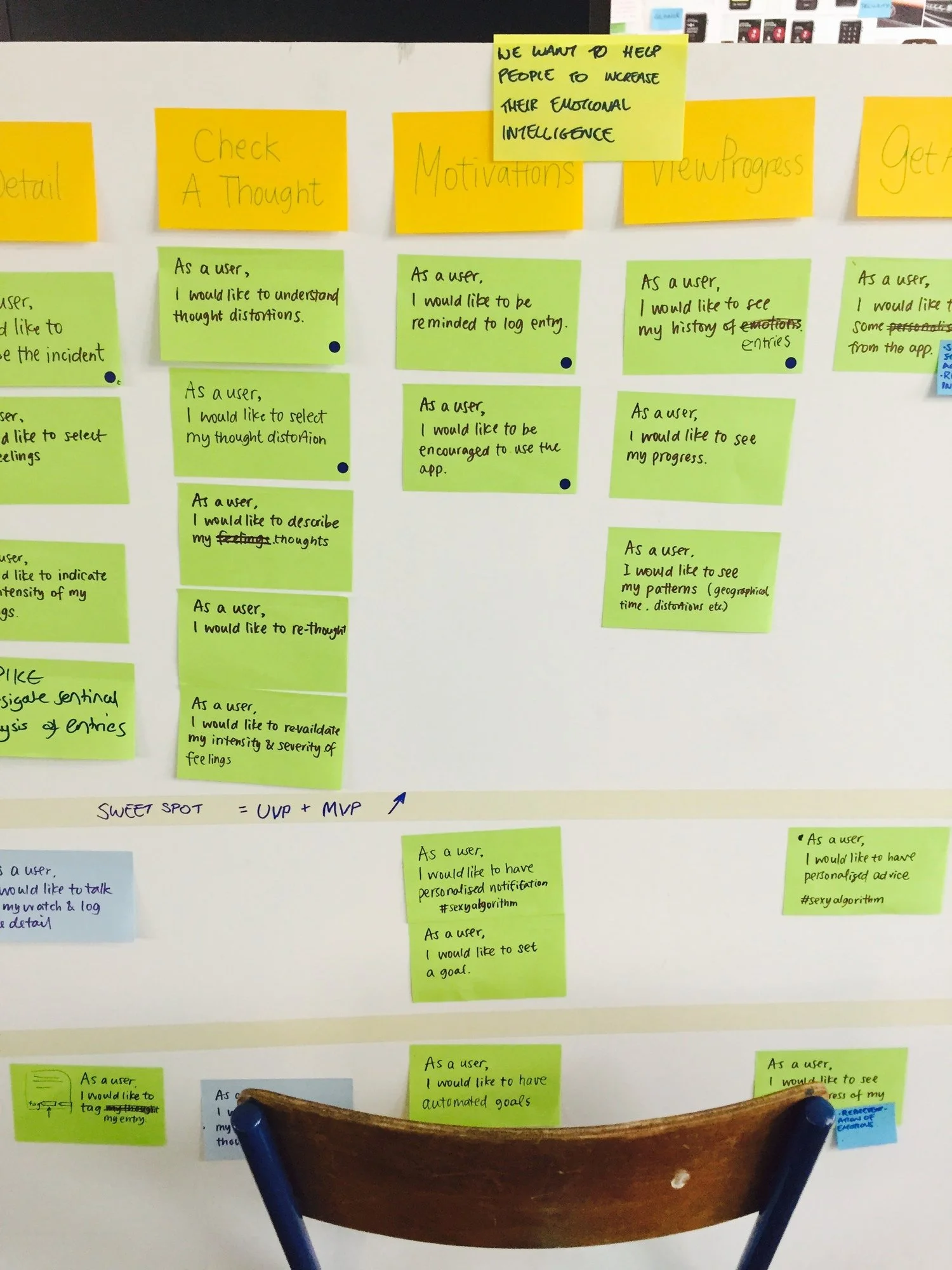 We carried out UX research with “extreme” personas (a monk, actress, coach), which inspired our backlog creation.