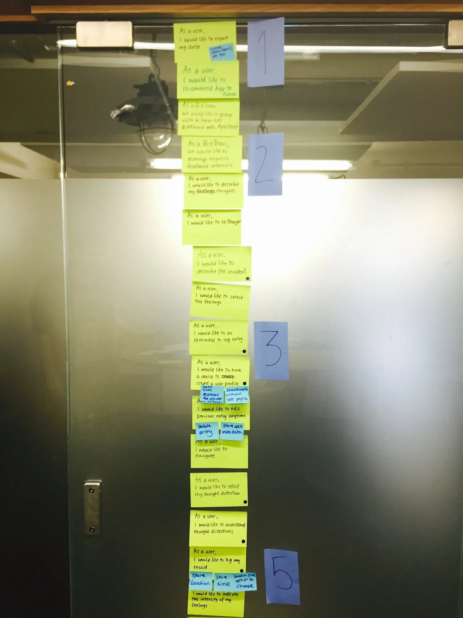 How often do you honestly answer the question, “How are you…”? The design of the application involved physically swiping to bookmark your mood in the moment, and with more time, identify and document which thinking traps you might be falling into. Over time users also note trends and insights they notice.